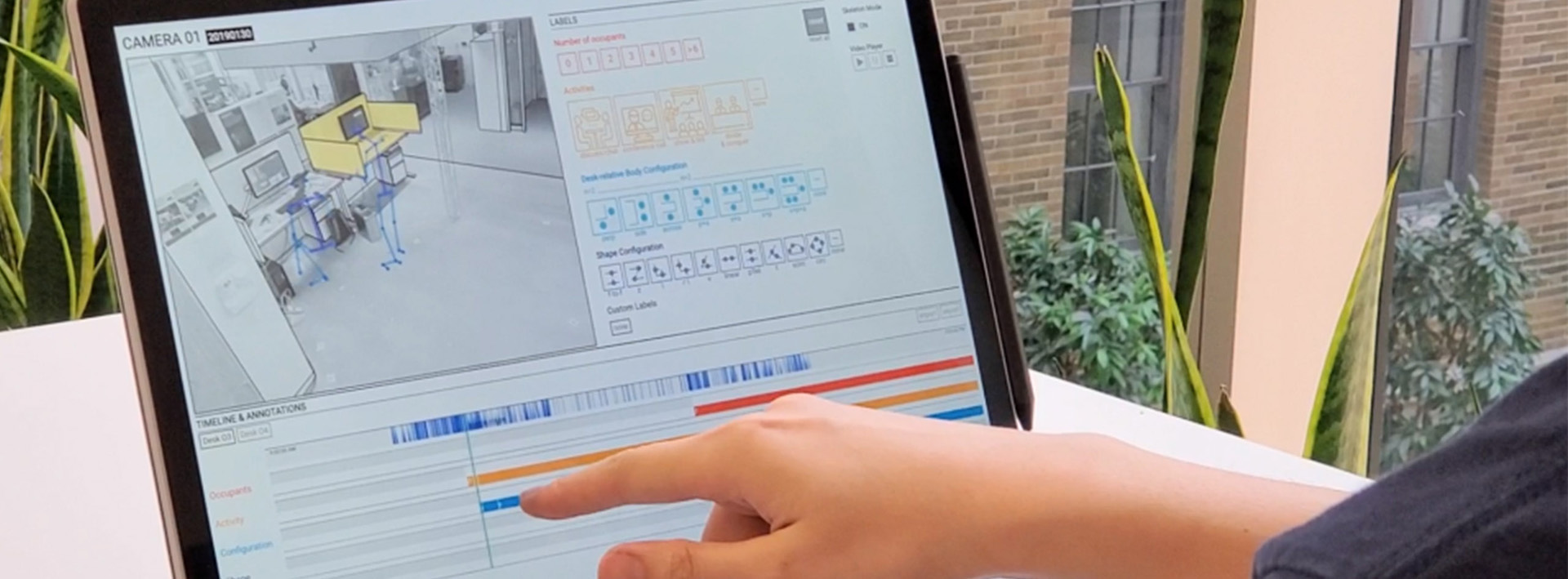 The design of a workplace can have a profound impact on the effectiveness of the workforce utilizing the space. When considering dynamic social activities in the flow of work, the constraints of the static elements of the interior reveals the adaptive behaviour of the occupants in trying to accommodate these constraints while performing their daily tasks. To better understand how workplace design shapes social interactions, we ran an empirical study in an office context over a two week period. We collected video from 24 cameras in a dozen space configurations totaling 1,920 hours of recorded activities. We utilized computer vision techniques, to produce skeletonized representations of the occupants, to assist in the annotation and data analysis process. We present our findings of socio-spatial formation patterns and the effects of furniture and interior elements on the observed behaviour of collaborators for both computer-supported work and for unmediated social interaction. Combining the observations with an interview of the occupants’ reflections, we discuss dynamics of socio-spatial formations and how this knowledge can support social interactions in the domain of space design systems and interactive interiors.